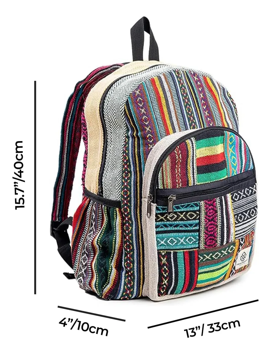 Mochila Grande De Cáñamo Mochila De Bolsillo Multifuncional